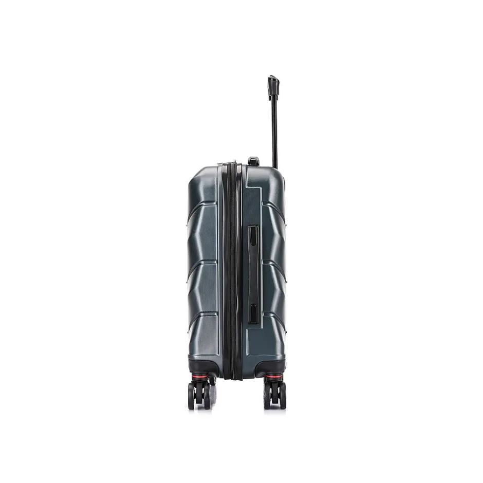 Improve your travel experience with this DUKAP ZONIX lightweight, carry-on luggage. The hard-flex construction offers maximum strength, durability, and a water-/scratch-resistant finish. Features 360-degree silent wheels that make it incredibly easy to maneuver. The suitcase also offers push-button locking internal retractable trolley system, top and side ergonomic gel handles, and smooth gliding oversized zippers. The fully lined interior features a zipper compartment on one side and snap-on straps on the opposite side for easy packing.