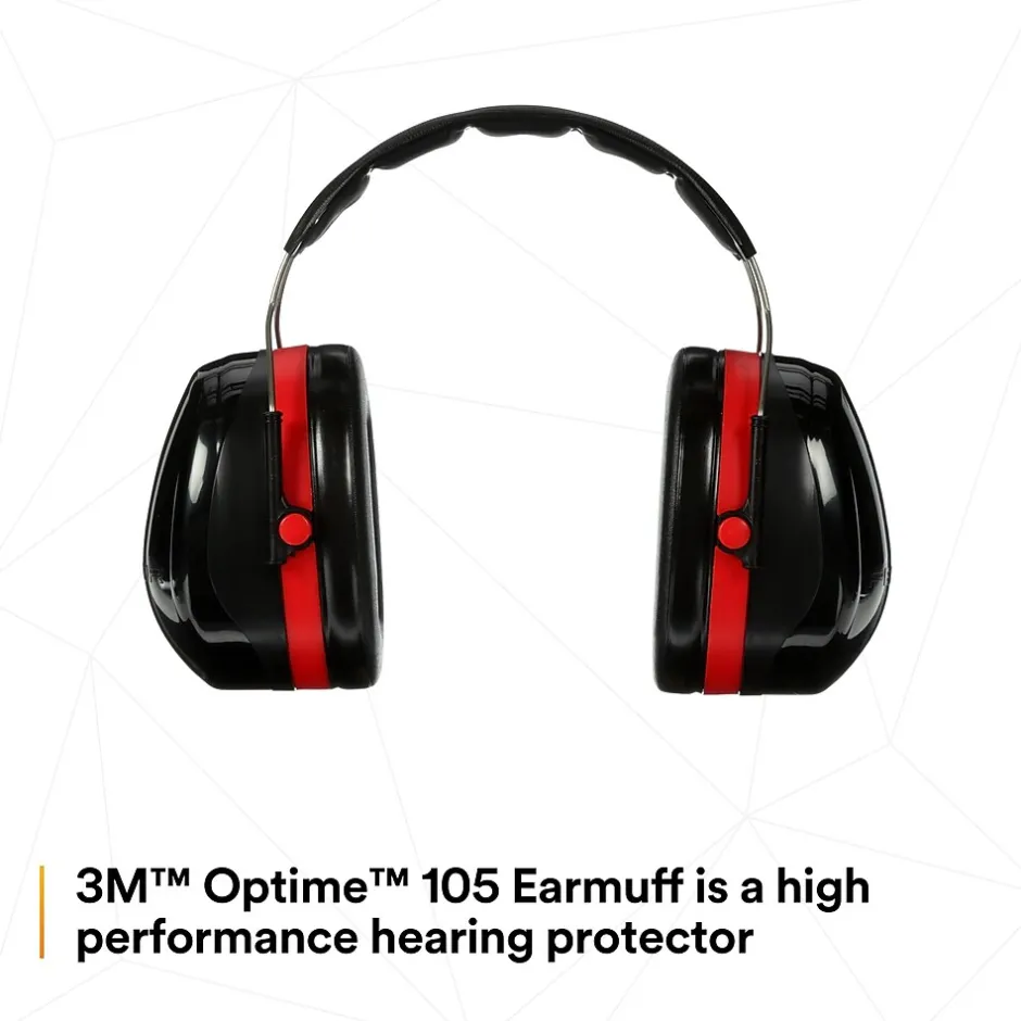 The 3M™ Peltor™ Optime™ 105 Over-the-Head Earmuff has been developed for effective hearing protection in the most demanding noise environments where noise exposures are expected to reach as high as 105 dBA. The Optime™ 105 over-the-head earmuff features added mass and volume, plus a unique “double-shell” earcup design (two cups connected via foam inner layer) to boost the noise reduction throughout the full range of low and high frequencies. The durable stainless steel headband resists bending and warping and distributes weight for a low-pressure fit. The lightweight headband works in conjunction with earcup pivot points that tilt to maximize wearer comfort. Soft, liquid &foam filled cushions help the earmuffs fit comfortably against the head to help provide an effective noise-blocking seal.