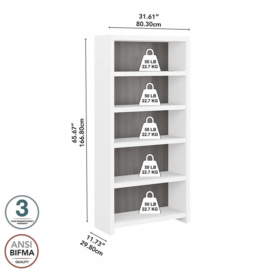 Give your workspace a charming bookshelf built with the style and strength to support the professionals of today. The Bush Business Furniture Echo 5 Shelf Bookcase offers wide lines and a commercial-grade construction designed to impress and endure. Fashionable yet functional, the contemporary Bookcase combines two fixed and three adjustable shelves for convenient, flexible storage perfect for work materials, books or decorative accents. Several elegant finishes coordinate with your favorite decor and accessories to feel at home wherever you work or live. From Bush Business Furniture, the 5 Shelf Bookcase comes with a 3 Year Manufacturer’s Warranty and meets ANSI/BIFMA quality standards. Browse our full line of contemporary furniture to create an office set you’ll love for years to come. Celebrate your unique style and personality with the Echo Collection.