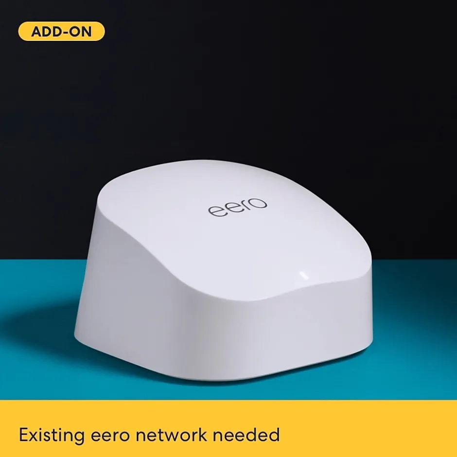 Add up to 1,500 sq. ft. of coverage to your existing eero network. Extend your eero network with speeds up to 500 Mbps. Wi-Fi 6 brings fast connectivity to every room in your home.