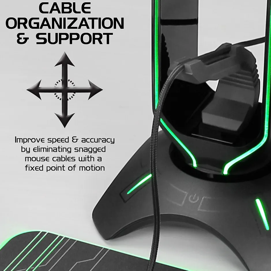 - 3-IN-1 DESIGN: Save desktop space and add some LED lighting with a mouse bungee, headset stand, and USB Hub in one convenient and elegant design