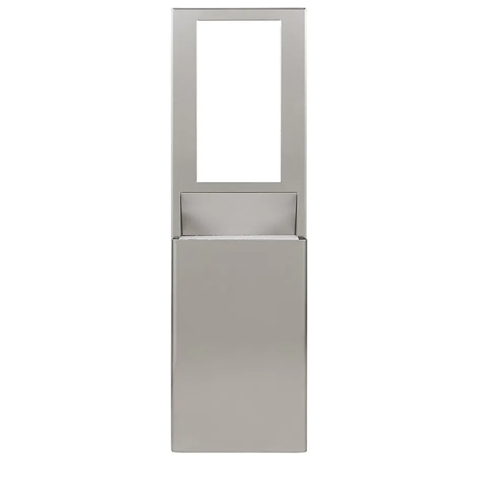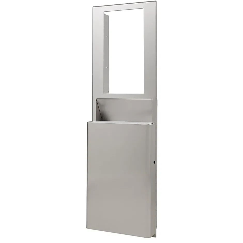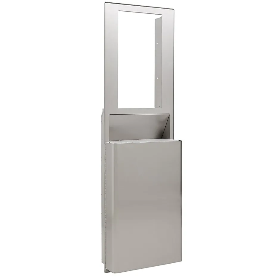 Higher capacity (10.12 Gallon vs. 6.93) trash receptacle for the Georgia-Pacific enMotion® Flex Recessed Paper Towel Dispensers is specifically engineered for facilities with a 15″ cavity. This trash receptacle is ideal for new facilities or renovations. Stainless steel design complements any decor to enhance the image of any facility and is ADA compliant helping provide a total solution. *Due to space limitations when stud cavities are less than 15”, the high capacity trash receptacle cannot be used – see 59751.