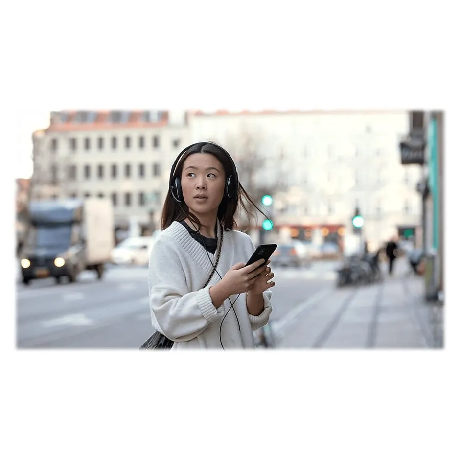 - Black on-ear design with high-comfort ear pads