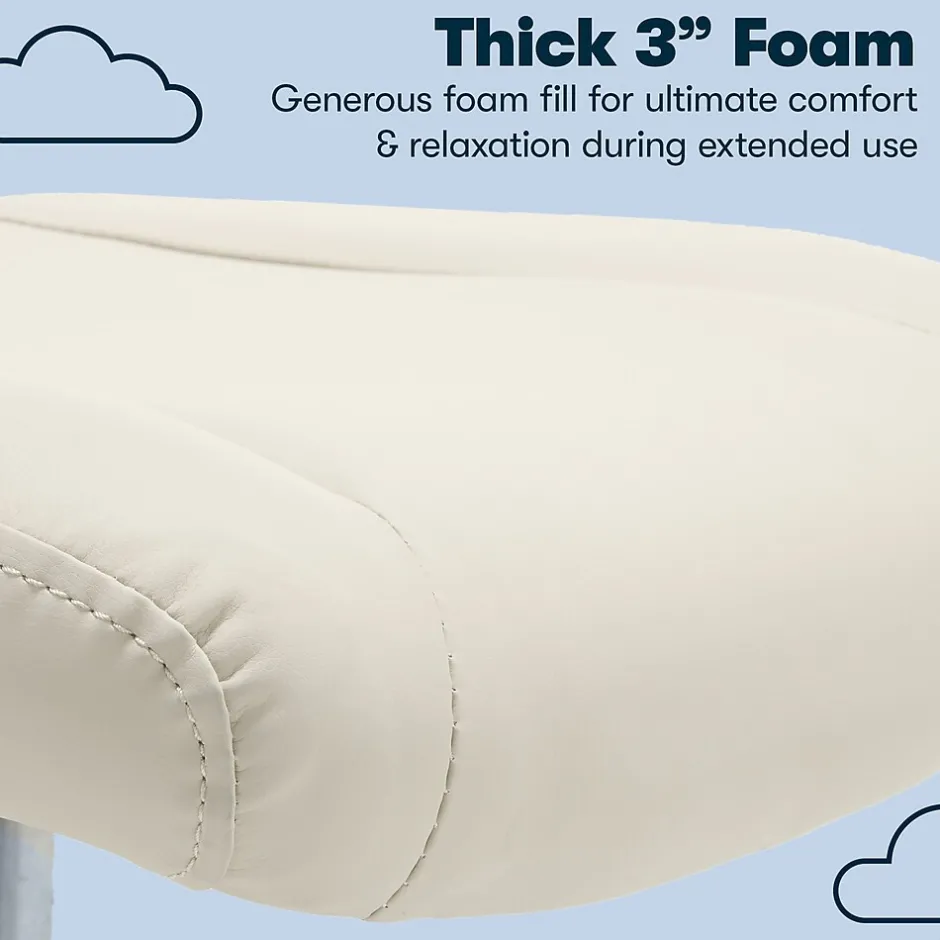 - Cream color bonded leather seat with breathable mesh back for comfort