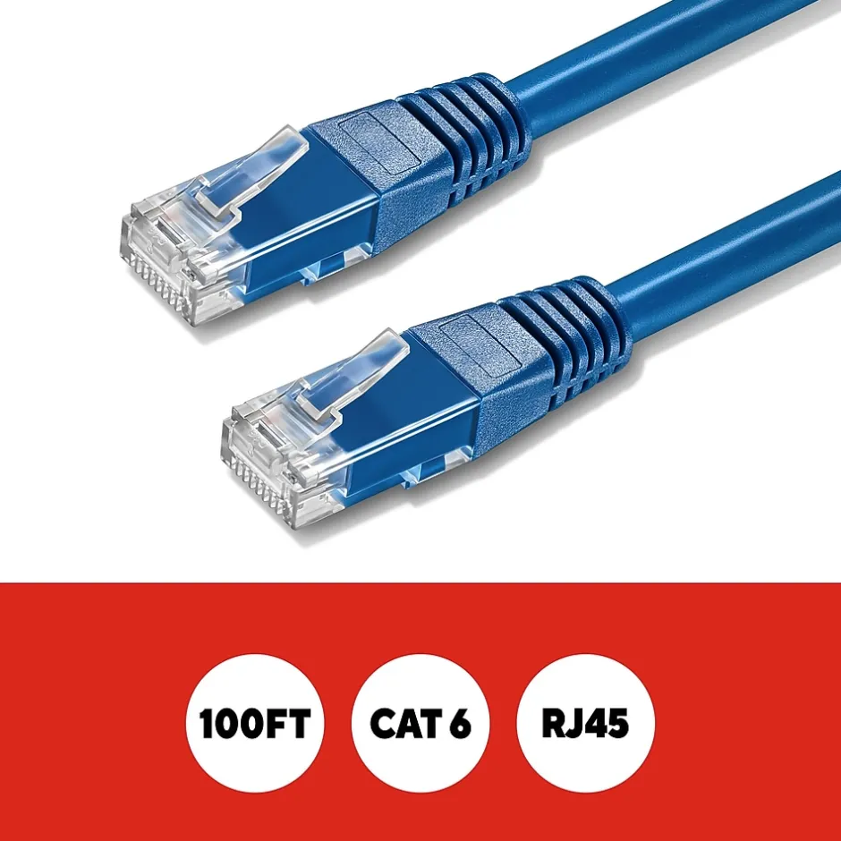 Connect high-speed network devices – like modems, PCs, laptops, smart TVs, gaming consoles and more – with this Staples TECH Ethernet cable. The 50-foot cable provides extra length to connect from across the room, while the CAT 6 configuration offers data transfer speeds up to 10Gbps for fast performance. This Staples TECH CAT 6 Ethernet cable has snag-free RJ45 connectors for an efficient and stable signal between compatible devices. Backed by Staples Brands 100% satisfaction guarantee, or your money back.