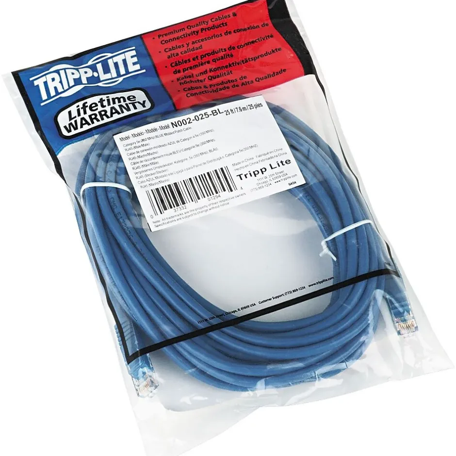 Get the Tripp Lite N002-025-BL CAT-5e Cable to ensure reliable Ethernet network connections between your system and routers, hubs or switches. Both ends of this networking cable play host to RJ-45 male network connectors for seamless connection between devices. It has a durable and good-quality PVC jacket that preserves the integrity of the high-quality copper conductor.
