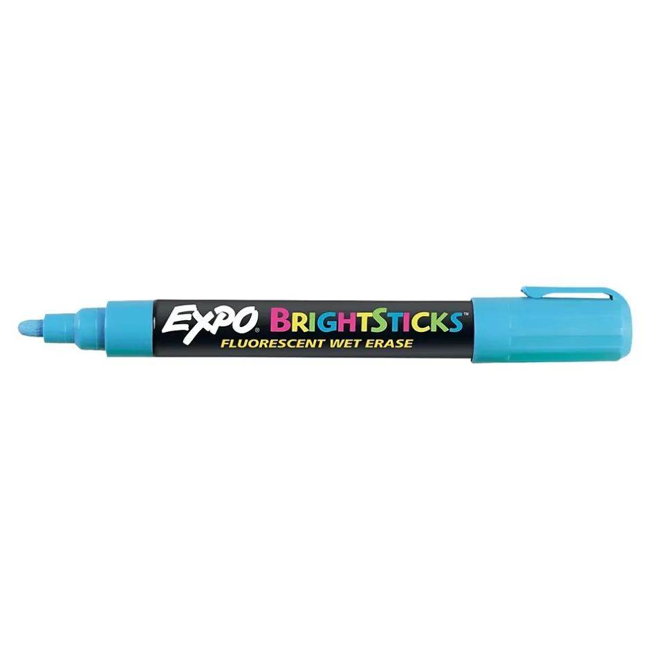 Create bright, visible text or drawings that catch people’s attention in restaurants, stores, or schools with these fluorescent wet-erase markers. These quick-drying, non-toxic markers work on glass, black marker boards, and UV-light boards, wiping right off with a wet cloth. This pack includes five assorted colors of Expo BrightSticks fluorescent wet-erase markers featuring bullet nibs for bold and uniform writing.