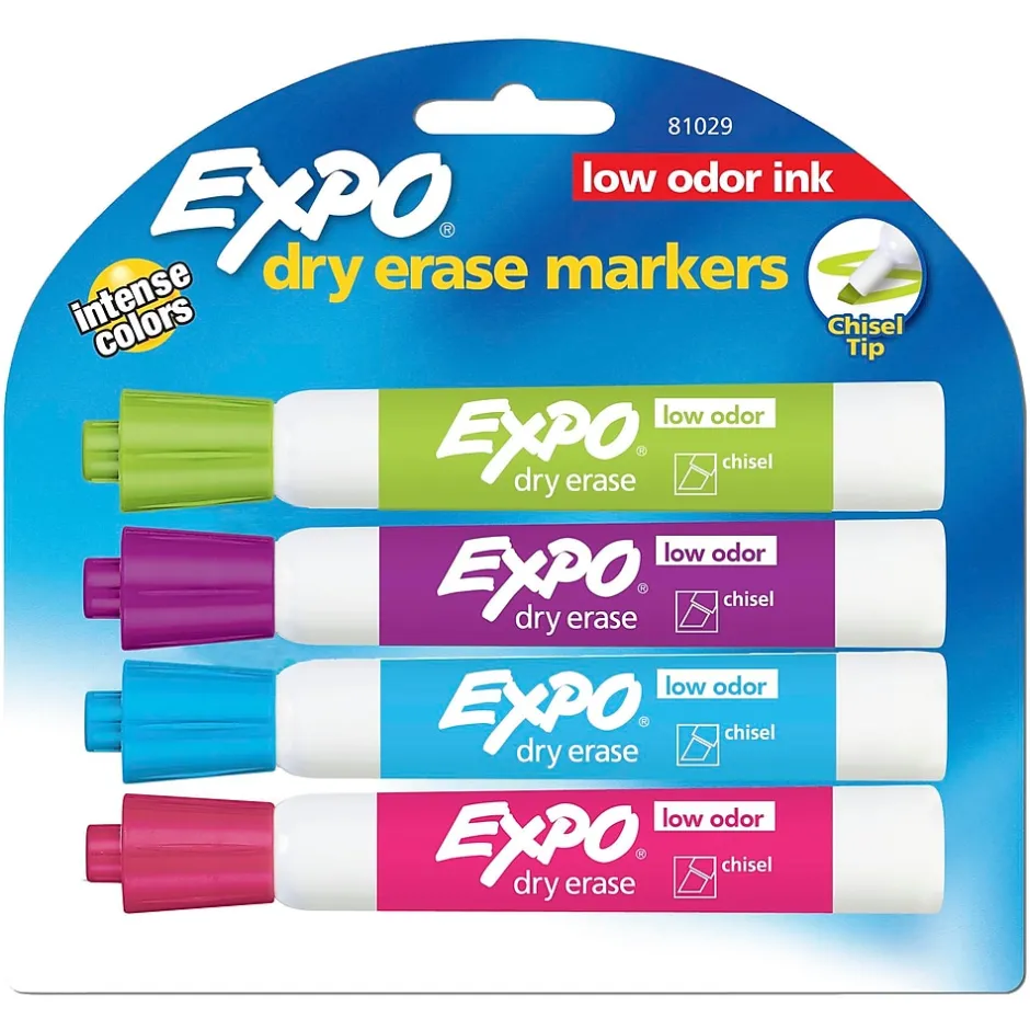 EXPO Low Odor Dry Erase Marker has a quick-drying ink that minimizes the potential for smearing and uses a special low-odor ink formula, which makes it ideal for classrooms, offices, and homes.