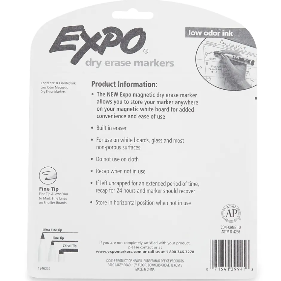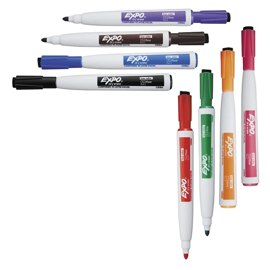 Categorize notes easily with these assorted-color magnetic dry-erase markers. Featuring erasers on the caps, these markers are great for when you need to revise your writing, and the fine-point tips make it simple to draw precise lines. These EXPO dry-erase markers have a magnetic design, so you can conveniently attach them to the whiteboard when not in use.