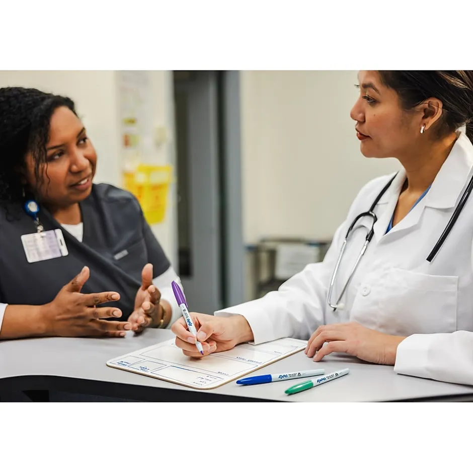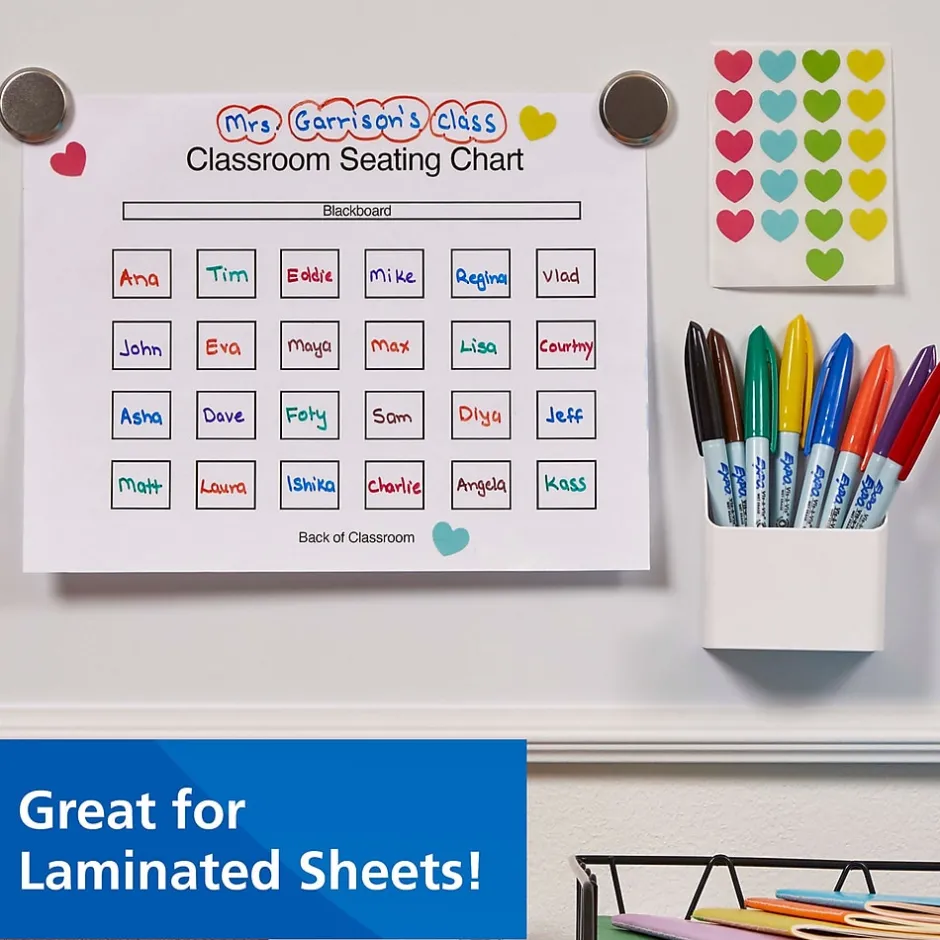 Update your office supplies with these wet-erase markers that each feature a fine point for enhanced precision and accuracy. Because these markers are non-toxic, they’re safe for children to use. These Expo Vis-a-Vis overhead markers contain a water-based ink formula that makes for a bright look on white boards or transparencies.