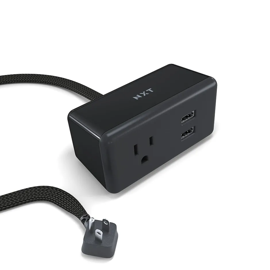 Rely on the included cord management of this USB desktop charger to keep your workspace organized. The 10-amp outlet meets the demands of your devices, while the two USB ports keep tablets and smartphones ready for use. With a right-angled plug, this mountable NXT Technologies™ USB desktop charger fits in tight spots to free up space, and the braided cord ensures long-lasting durability.