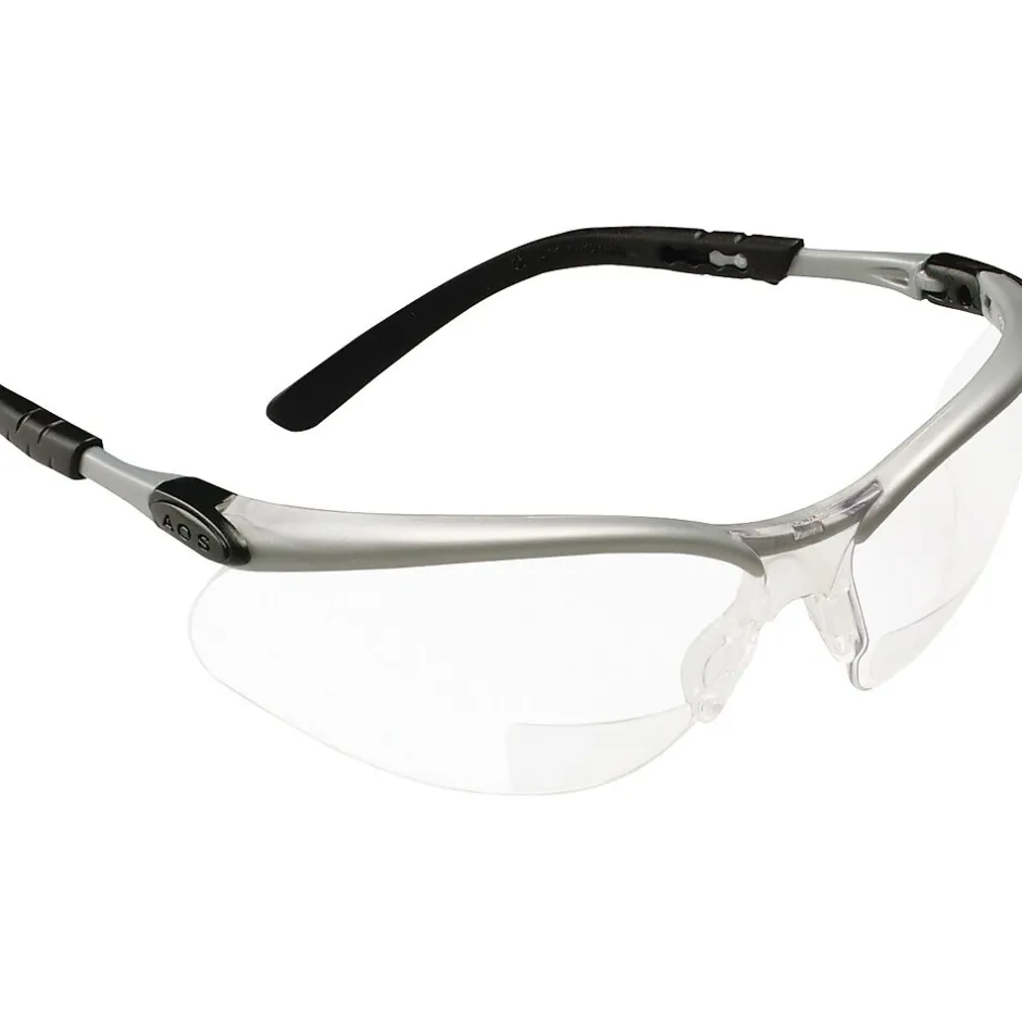 3M Silver & Black Frame Safety Glasses, Gray are made of durable polycarbonate lenses. They provide protection against scratches and UV radiation and have an adjustable frame design.