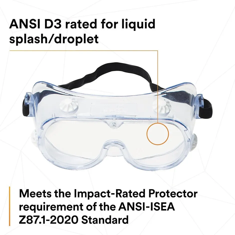 The 334 safety splash goggles are a dependable and economical choice that offer a sturdy polycarbonate lens, adjustable elastic strap and a wide opening to fit over prescription eyewear. It is built with an indirect venting system that circulates air and helps minimize fogging, allowing for use in varied environments and conditions.