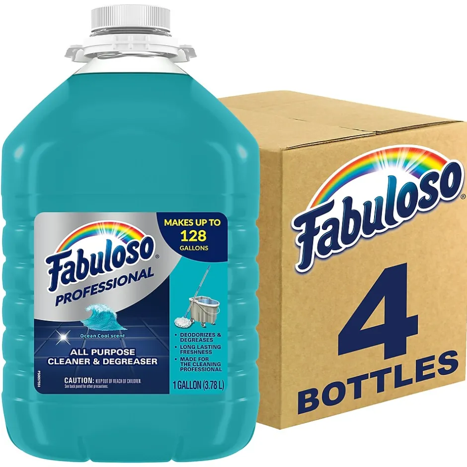 Fabuloso Professional is an all-purpose cleaner and degreaser that is effective for a wide variety of cleaning applications. The Fabuloso Professional formula deep cleans to remove grease and soils while leaving a long-lasting fragrance. Its neutral pH makes the product safe for surfaces. No rinsing step needed in floor cleaning application.
