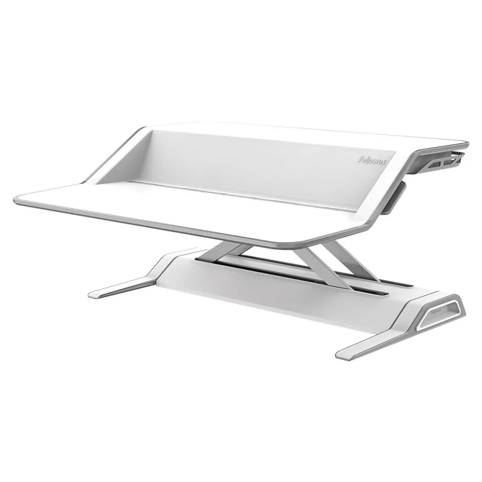 Get out of your seat with the adjustable stand that makes up this sit-and-stand workstation. The 22 different height settings can accommodate people of various heights, and Smooth Lift Technology ensures height adjustments require little effort and minimize their impact on items on top. With an included cord management system, this Fellowes Lotus monitor stand can accommodate power cords and connections even when the monitor is raised.