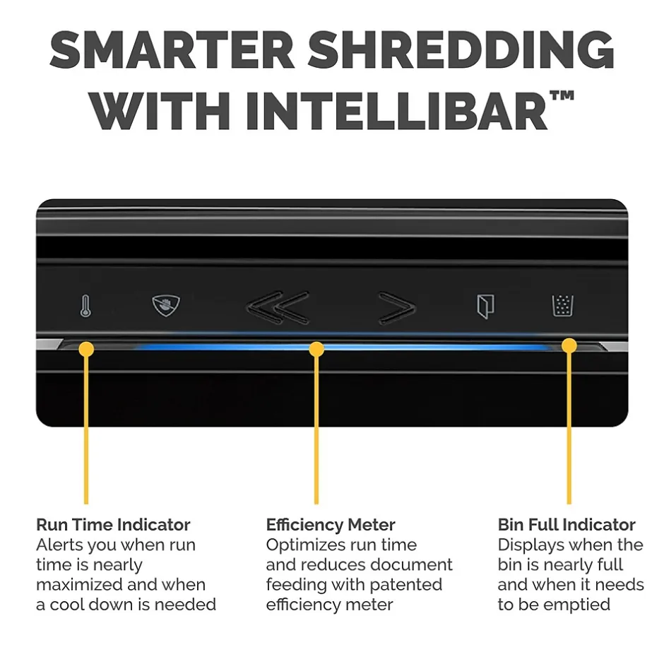 - Monitor real time performance with bin full and run time indicators and optimize how many sheets to feed at one time with the efficiency meter