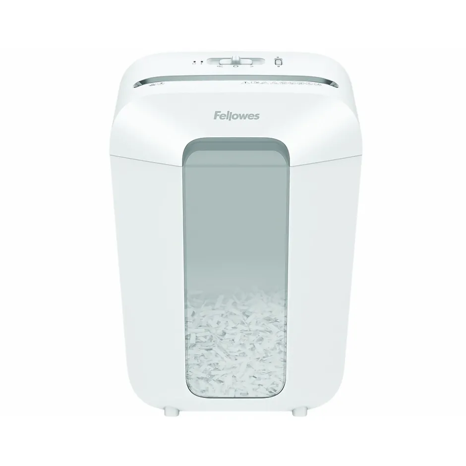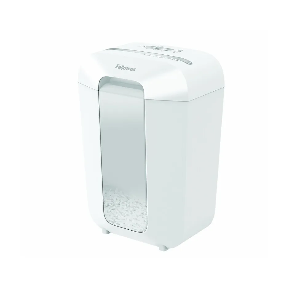 The Fellowes Powershred LX75 crosscut shredder is a reliable desktop shredder for personal use. Its elevated and sophisticated design brings distinction to any work or home office environment. The LX75 shreds 11 sheets per pass into 0.16″ x 1.25″ crosscut particles (security level P-4) and safely shreds staples, paper clips, plastic credit cards, and unopened junk mail. Its 4.8 gal. wastebasket with easy lift-off head holds up to 222 shredded sheets. Designed for individual use, the LX75 shreds for up to 5 minutes before a 30-minute cooldown period is needed.