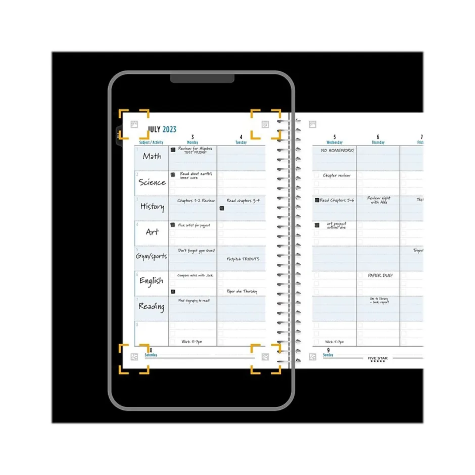 - Sync your planner to your phone with the Five Star Study App: scan the planner pages to track and manage your assignments to access them anywhere, anytime