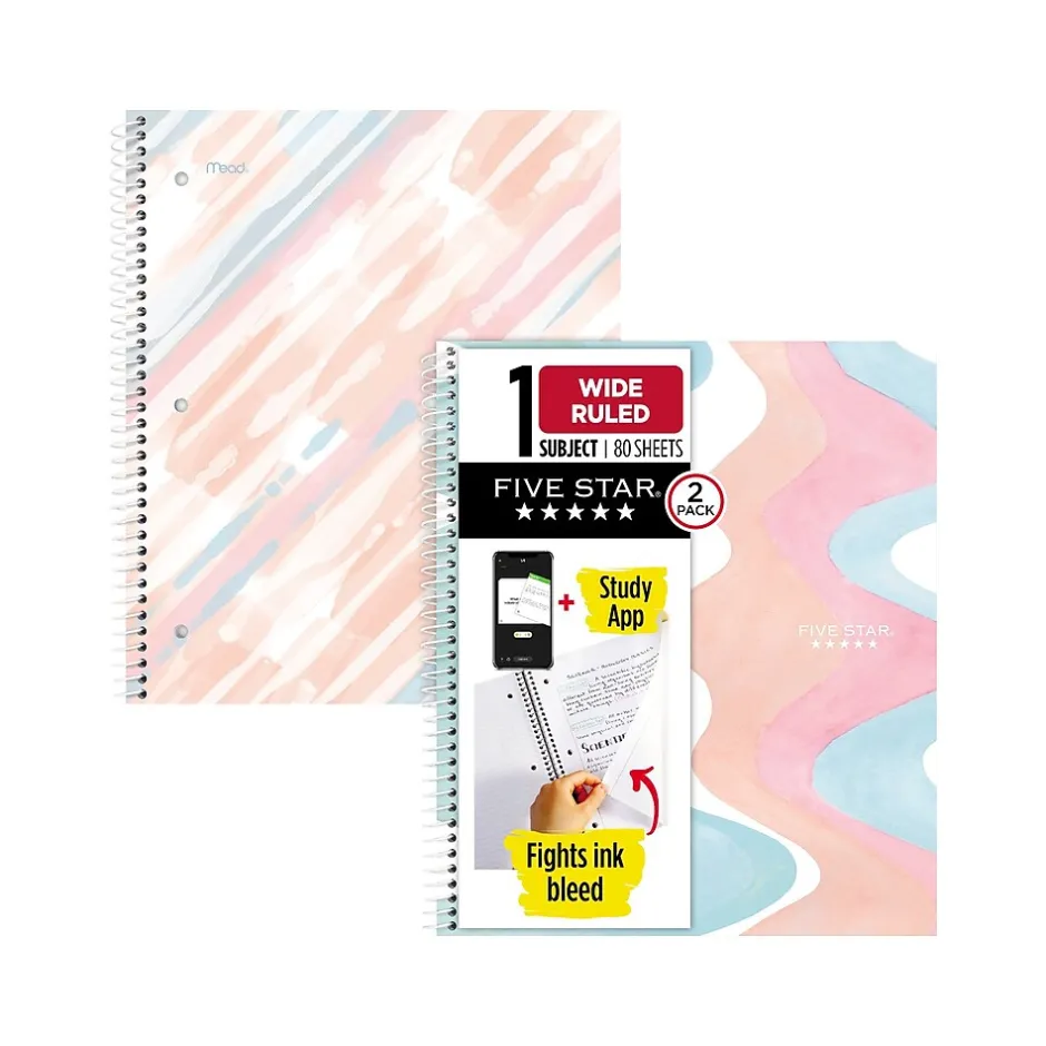 Express yourself this year with confident and energetic style. These Five Star Brushy Moves one-subject wide-ruled notebooks have durable covers and high-quality paper, making them a perfect choice for note-taking and organization.