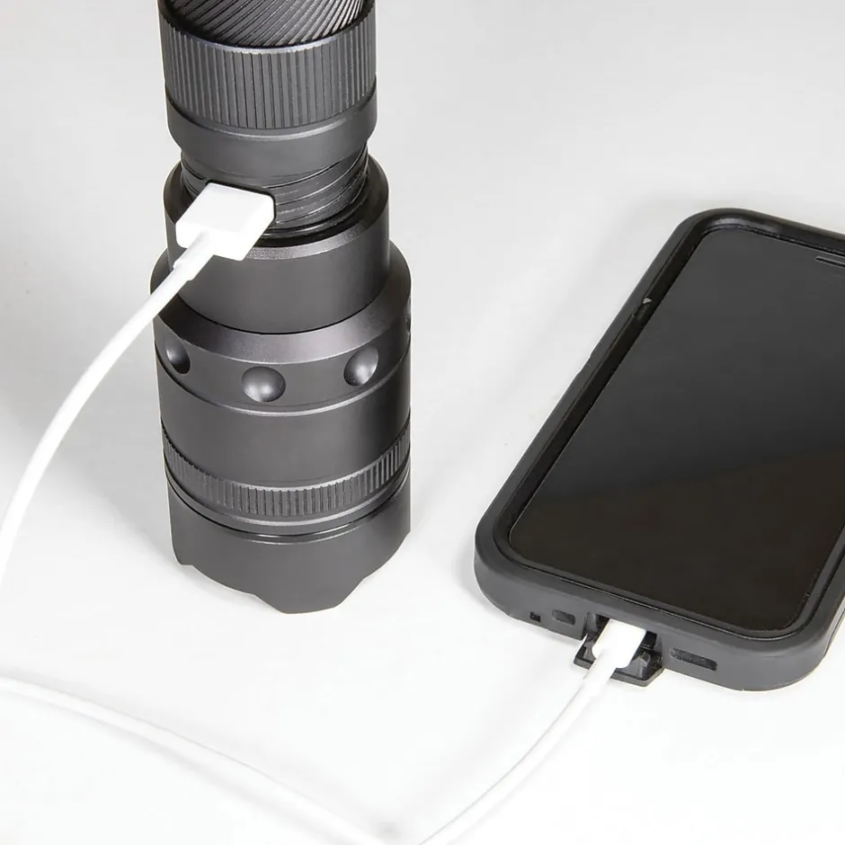 - Ideal for use in emergencies as both flashlight and USB-A powerbank to recharge electronic devices