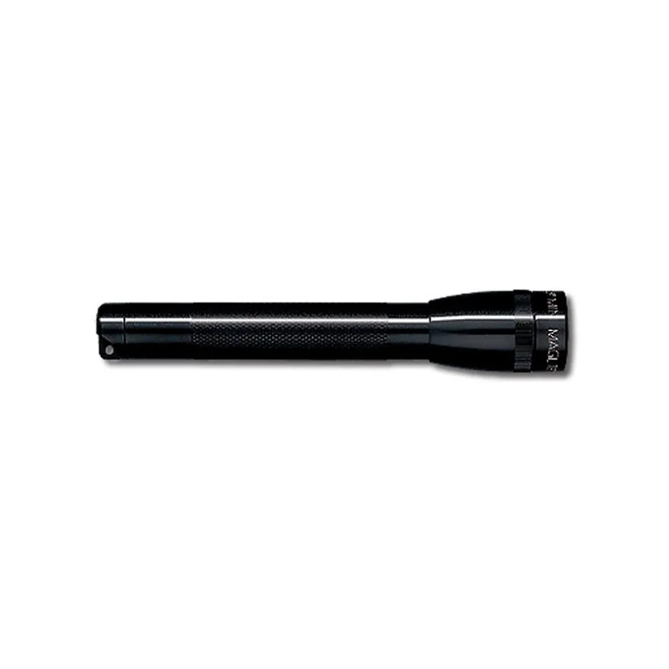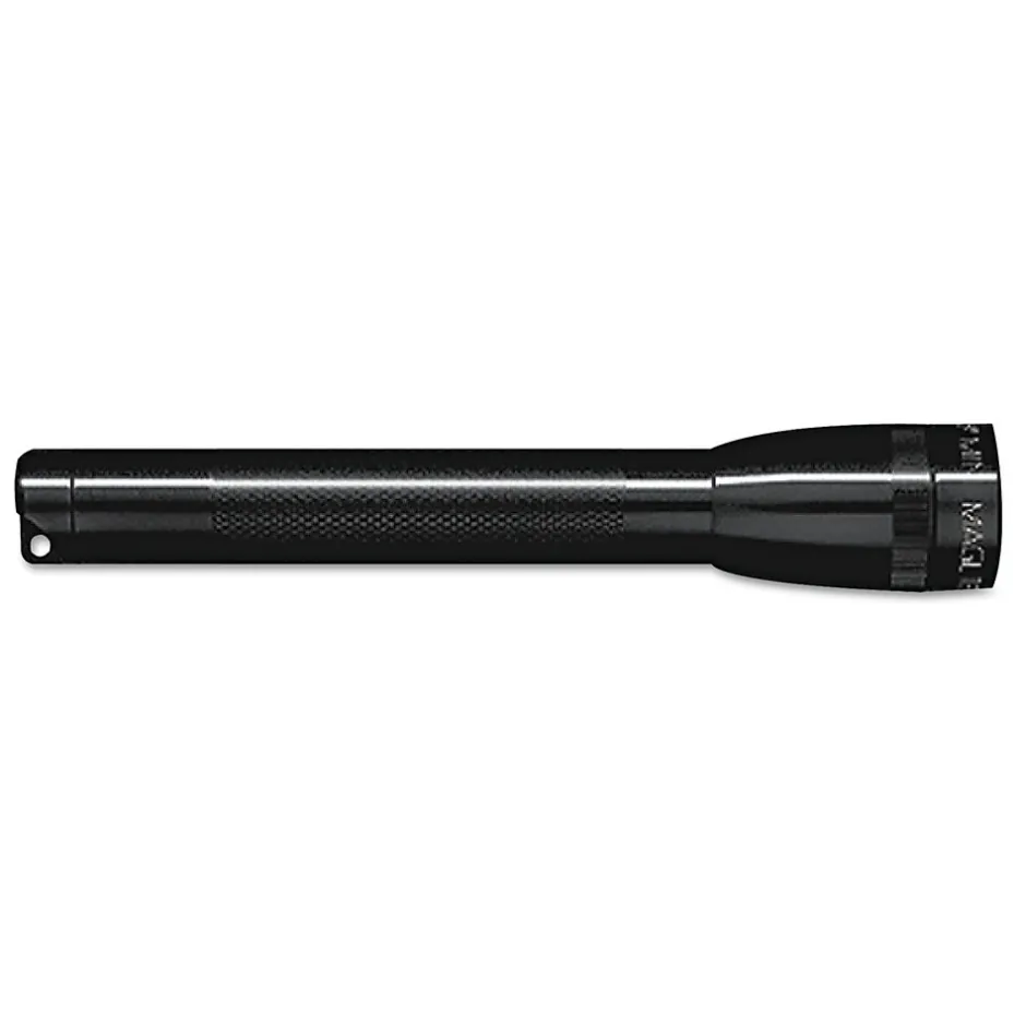Mini Maglite® Flashlight in black color includes incandescent bulb that offers beam distance up to 96 m and has aluminum construction. Flashlight requires 2 AA alkaline 3 VDC batteries to operate and has O-ring seal for moisture resistance.