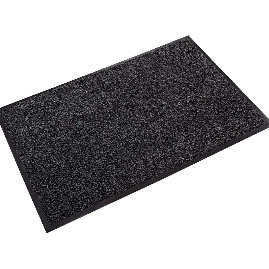 - Rectangular floor mat in charcoal color features an extruded loop pattern