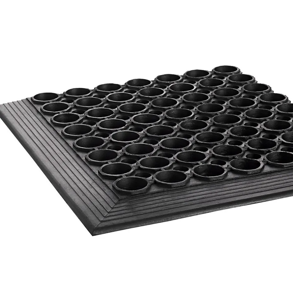 - Rectangular floor mat in black with circular drain through holes