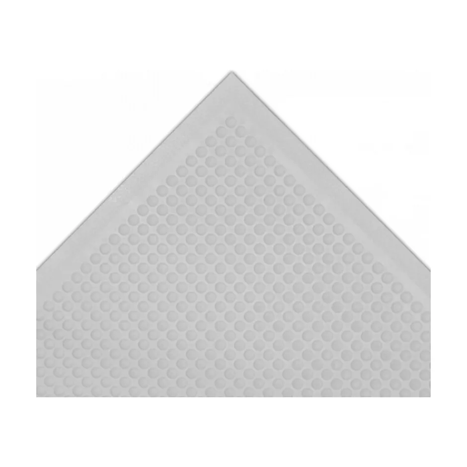 The NoTrax autoclavable bubble mat is a rubber anti-fatigue floor mat with a bubble top design. Offset bubbles on both the top and bottom of the mat provide flexibility and create airflow, resulting in maximum comfort for workers required to be on their feet for long periods of time. An industrial-grade antimicrobial agent inhibits the growth of most gram-positive and gram-negative bacteria and fungus on the mat’s surface. This ensures that the antimicrobial properties won’t wear-off over time like many post-applied topical agents. Although intended for use in dry environments, the top surface design is easy to wipe clean and the durable rubber compound is highly resistant to many hospital-grade cleaners and disinfectants, so occasional spills can be cleaned up quickly and easily. Molded beveled edges on all four sides eliminate trip hazards by allowing for easy access onto and off the mat.