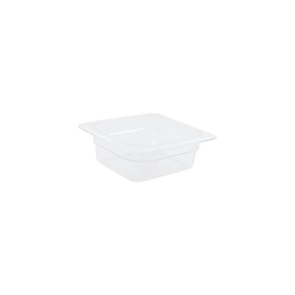 Ensure efficiency while increasing food safety in your establishment with this Cambro 62CW135 Camwear 2 1/2″ deep clear 1/6 size food pan! Built to withstand temperatures from -40 to 210degrees Fahrenheit, and made of virtually-unbreakable Camwear polycarbonate, this food pan is designed to last even in the toughest commercial kitchens. This pan won’t crack, bend, or dent. Use it to store, transport, and serve all from the same pan – the clear complexion offers an easy-to-see option, while molded-in graduations in standard and metric measurements promote easy inventory management. A uniform 1/2″ flange on this pan ensures a smooth fit in prep tables and food bars while a textured bottom resists scratching under everyday conditions. Inside the pan, a non-stick, smooth interior surface promotes easy cleaning while increasing yields, and a large radius bottom limits food waste. This pan won’t react to food, minimizing the risk of a potentially hazardous chemical or acidic reaction. Plus, tests prove that Camwear food pans keep product as cold as stainless steel pans, with less condensation. This means your fresh produce stays fresher, longer, saving you money in the long run! When not in use, this pan stacks neatly without wedging or sticking to other pans.