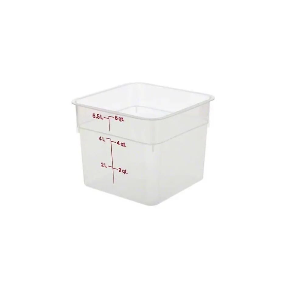Cambro® CamSquare® Food storage container in clear color is made of polypropylene for durability and has a capacity of 6 qt to store products. Container measuring 7 1/4″ x 8 3/8″ withstands temperature of range -40 to 160 deg F.