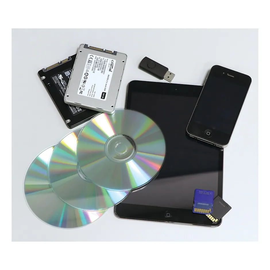 - Shreds tablets, USB flash drives, DVDs, cellular phones, SSDs, and CDs