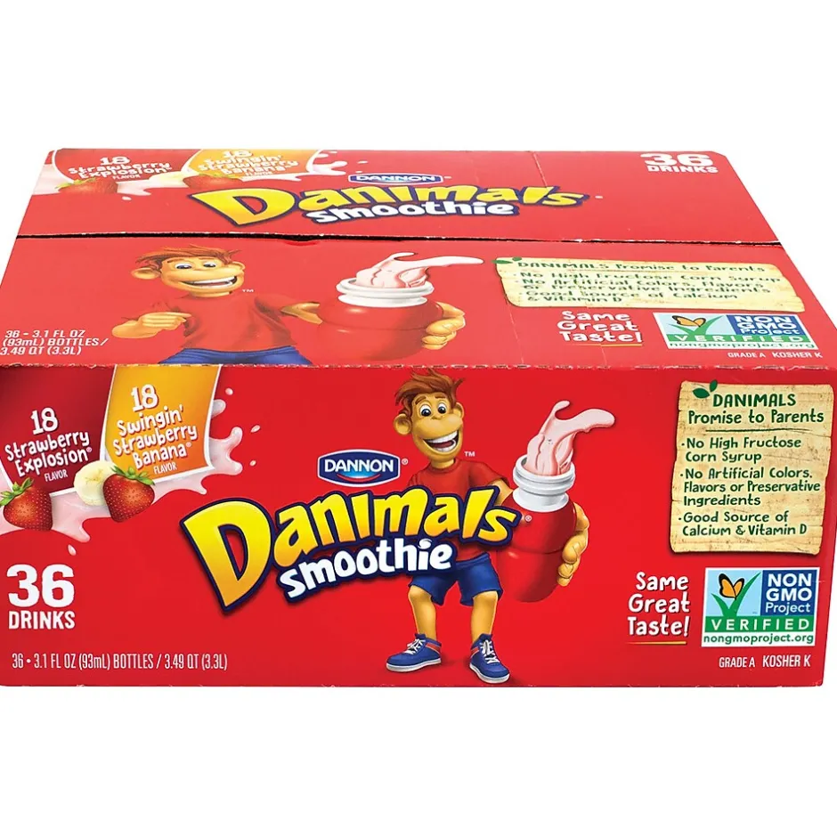 - A 36-Pack of Dannon Danimals Smoothies in Strawberry and Strawberry Banana Flavors
