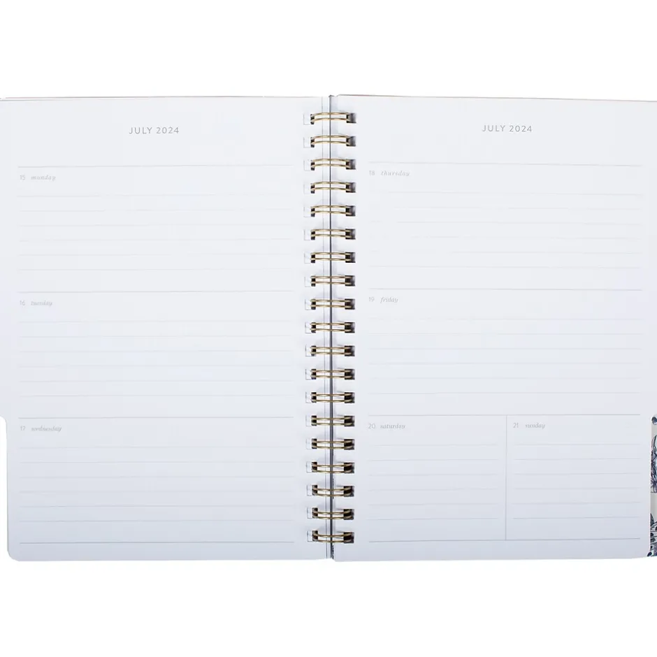The Fringe Chinoiserie 14-month spiral-bound weekly and monthly planner is a perfect way to stay organized from July 2024 through August 2025. This planner includes tab dividers for monthly overviews, weekly planning, and notes. The planner contains 184 pages and is printed on FSC paper.