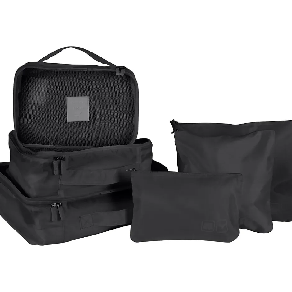 Make packing stress-free with the G Force six-piece ultimate traveling set, which includes three pouches (small, medium, and large) and three packing cubes (small, medium, and large). Each piece is made of lightweight, water-, stain- and tear-resistant ripstop material, making them durable and long-lasting. Maximize the space in your suitcase by organizing your packing essentials with the help of this set.