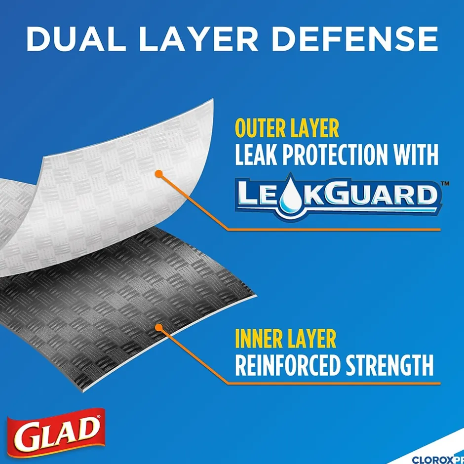 - FORCEFLEX TECHNOLOGY: Glad’s patented dual-layer protection is designed to give extra flex as it expands around sharp edges and heavy loads while resisting punctures, rips and tears