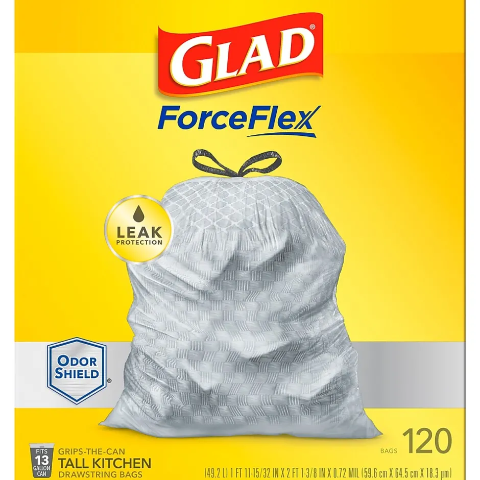 - 13 GALLON PLASTIC TRASH BAGS: Kitchen trash has never smelled better. Glad® ForceFlex Kitchen trash bags with odor protection continuously neutralizes odors