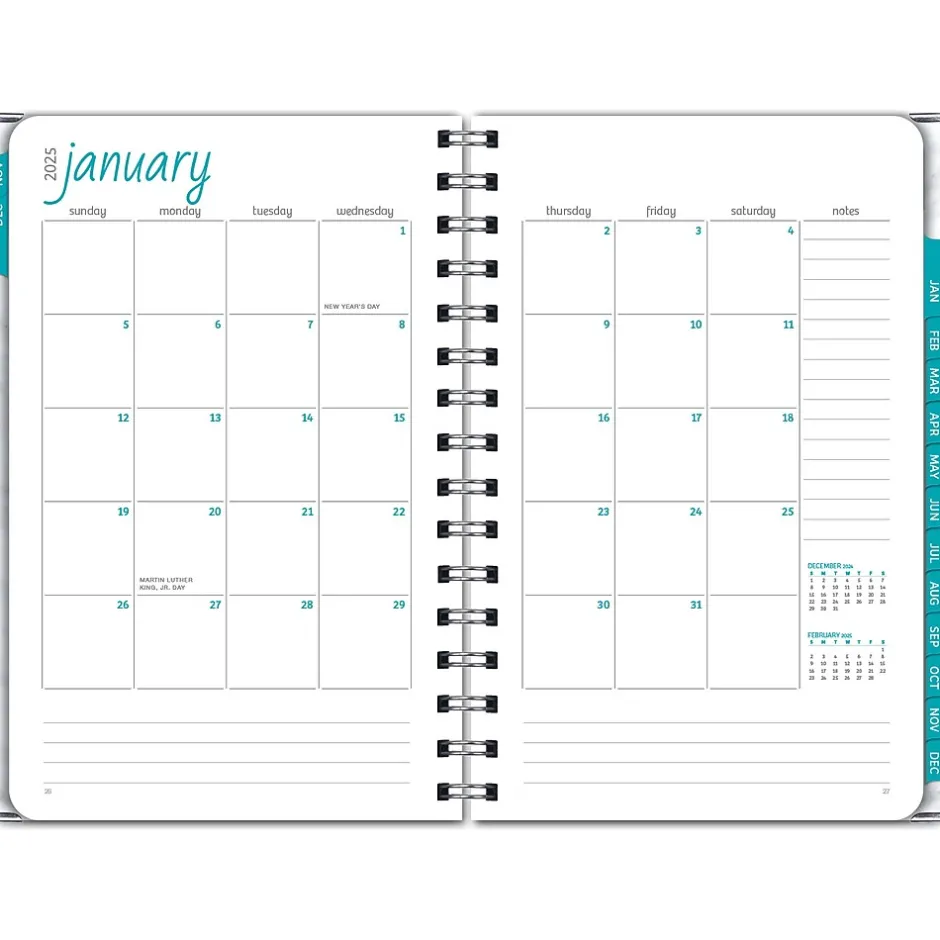 - Offers two-page monthly spreads, each followed by two-page weekly spreads