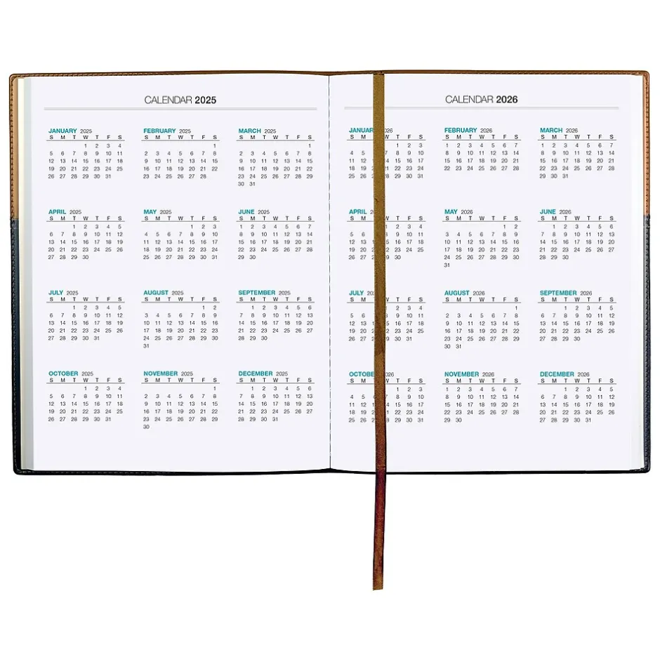 - Shows one month per two pages and one week per two pages