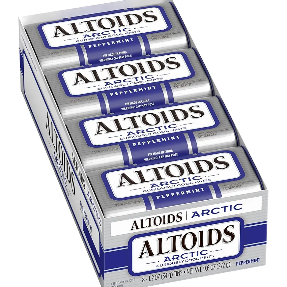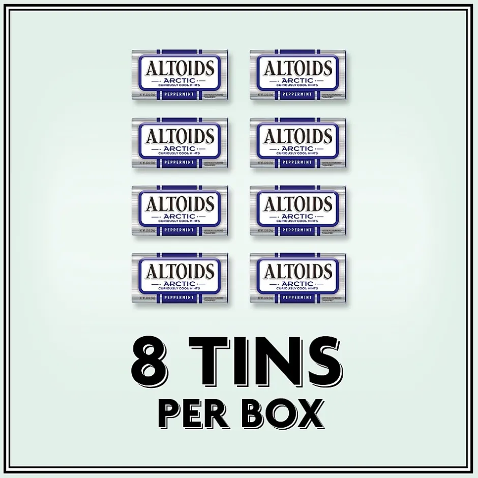- Contains eight (8) 1.2-ounce tins of Altoids Arctic Peppermint Breath Mints