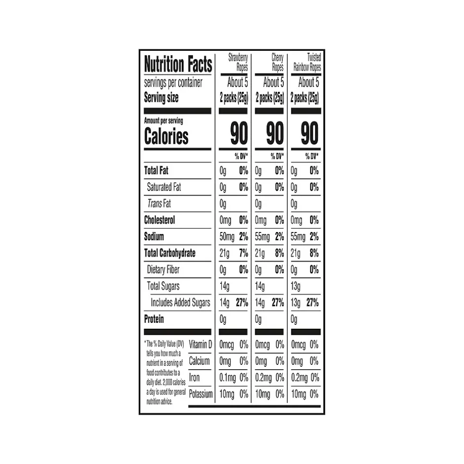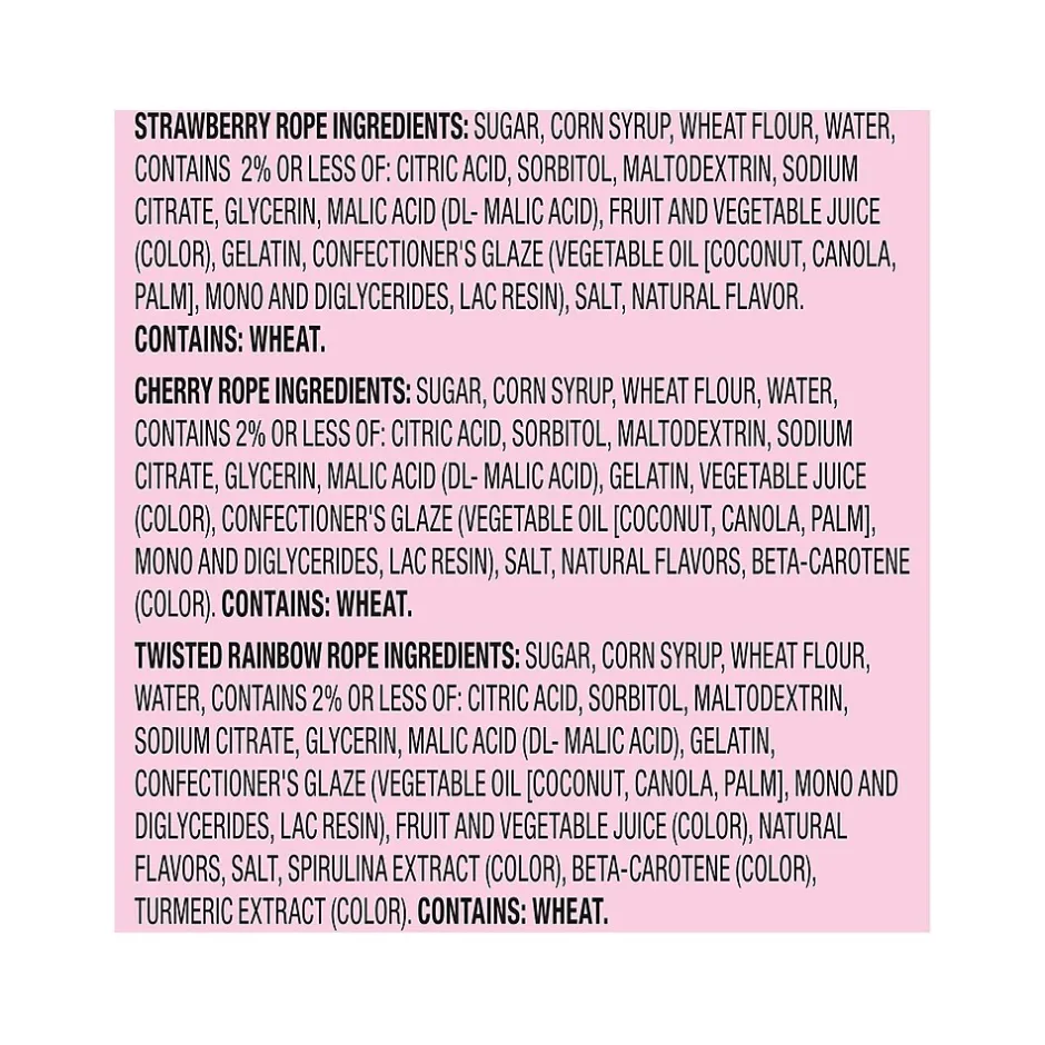 - Indulge in a colorful burst of sweet and fruity flavor with these chewy candy ropes; assorted flavors include Strawberry, Cherry, and Twisted Rainbow