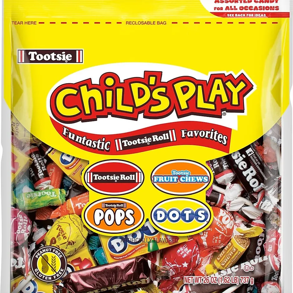 Four popular confection brands individually wrapped. Tootsie Roll, Tootsie Pops, DOT’s and Fruit Chews