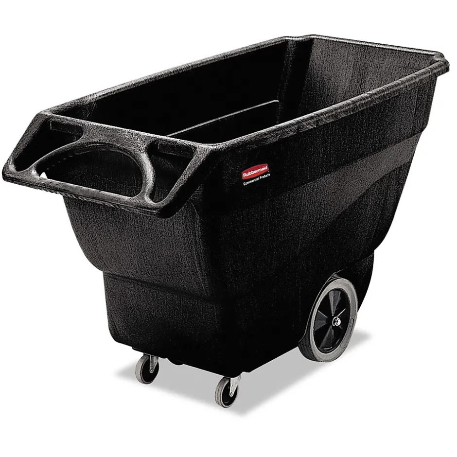 Rubbermaid commercial black structural foam tilt trucks are easy to clean and a cinch to handle as they help maintain your facility’s sanitary conditions. Two swivel casters combine with a steering wheel handle for excellent maneuverability around tight corners and in compact spaces. Molded structural foam and plastic represent two heavy-duty materials that are virtually maintenance-free and don’t take much to clean. Just hose down each tilt truck with water and get ready for the next load.