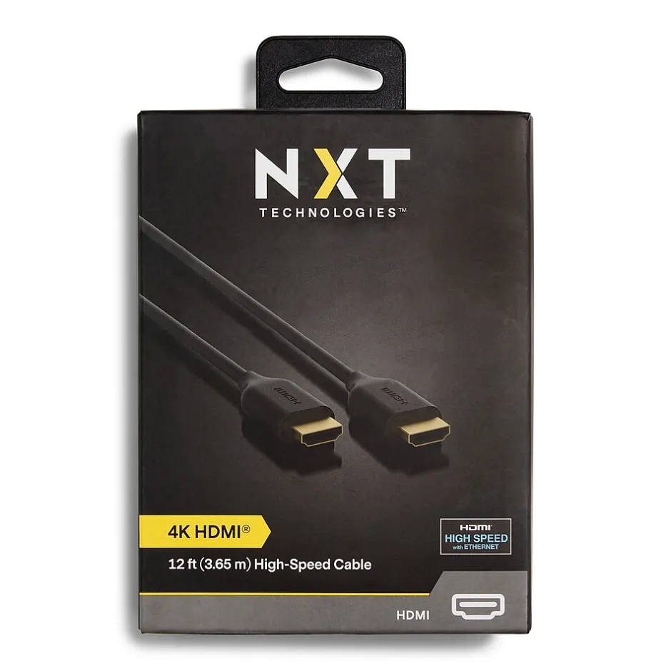 Display media on projectors, TVs and monitors with this HDMI cable. The 12-foot cord supports easy connections to various devices. This NXT Technologies 12-foot black HDMI cable supports 4K resolutions for immersive presentations during office meetings and workshops.