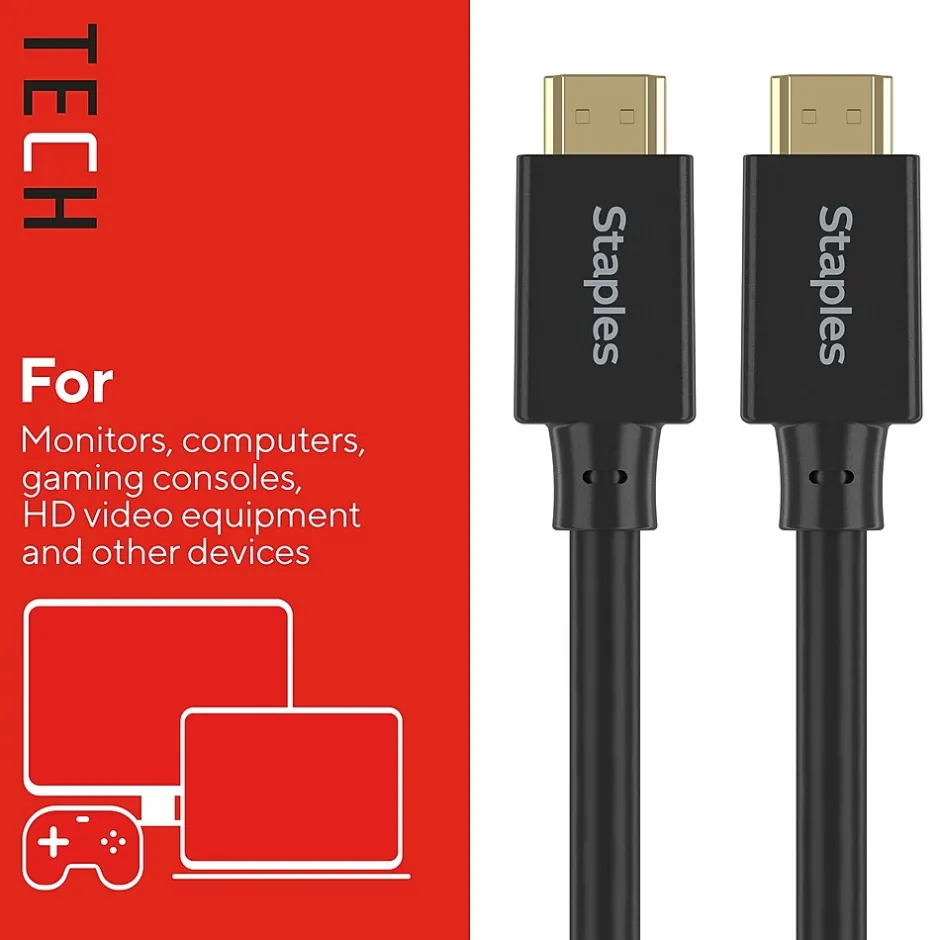 Delivering crisp 4K Ultra HD resolution this cable promises clear audio and video for an exceptional experience. Featuring a 25-foot cord, this cable provides you extra length to connect devices across the room. This cord is the perfect choice for outfitting your work, gaming or media space. Enjoy high resolution audio and video between devices so you can upgrade your home or office workspace and do your best work. Backed by Staples Brands 100% satisfaction guarantee, or your money back.