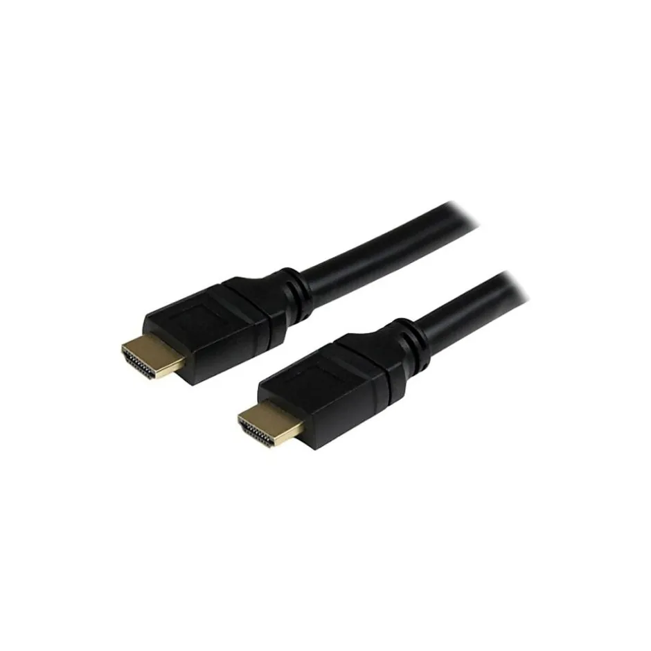 For clear and noise-free signal transfer between HDMI-enabled digital multimedia sources and an HDTV, the high speed StarTech HDMI Cable is just what you need. The 19-pin male HDMI connectors of the cable enable you to transfer a clean signal from your video source. For optimal signal transfer from your video source, the connectors of this high speed HDMI cable are gold-plated. An ultra flexible PVC jacket shields the copper wire against outside noise. Available in a convenient length of 35 feet, this 19-pin HDMI cable lets you position your equipment as per your requirements.