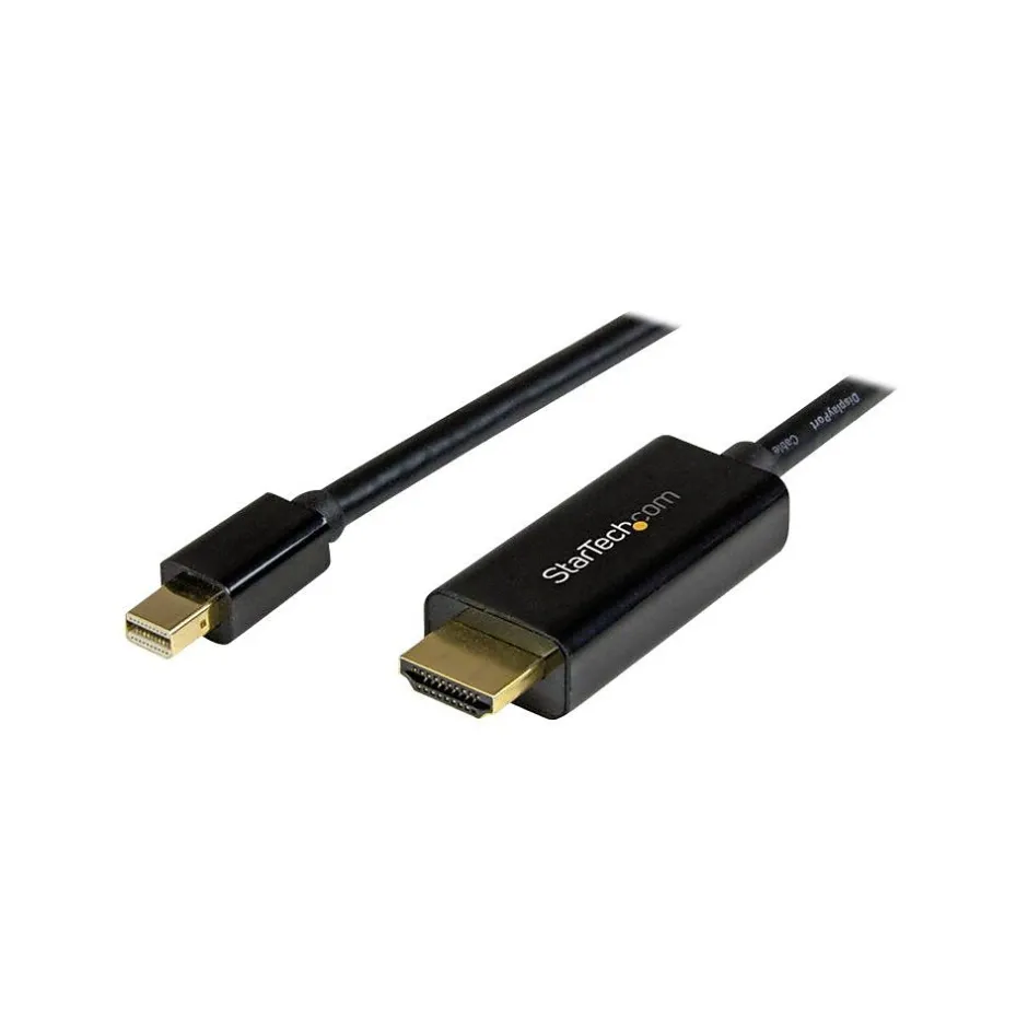 Configure your displays for any environment by using this StarTech 3′ mini DisplayPort male to HDMI male black converter cable. It supports resolutions of 1080p and 720p, so you can use your existing HDMI display while maintaining high-definition video quality. The converter cable saves you the hassle of combining an mDP to HDMI adapter with a bulky cable by offering an end-to-end solution for connecting your devices.