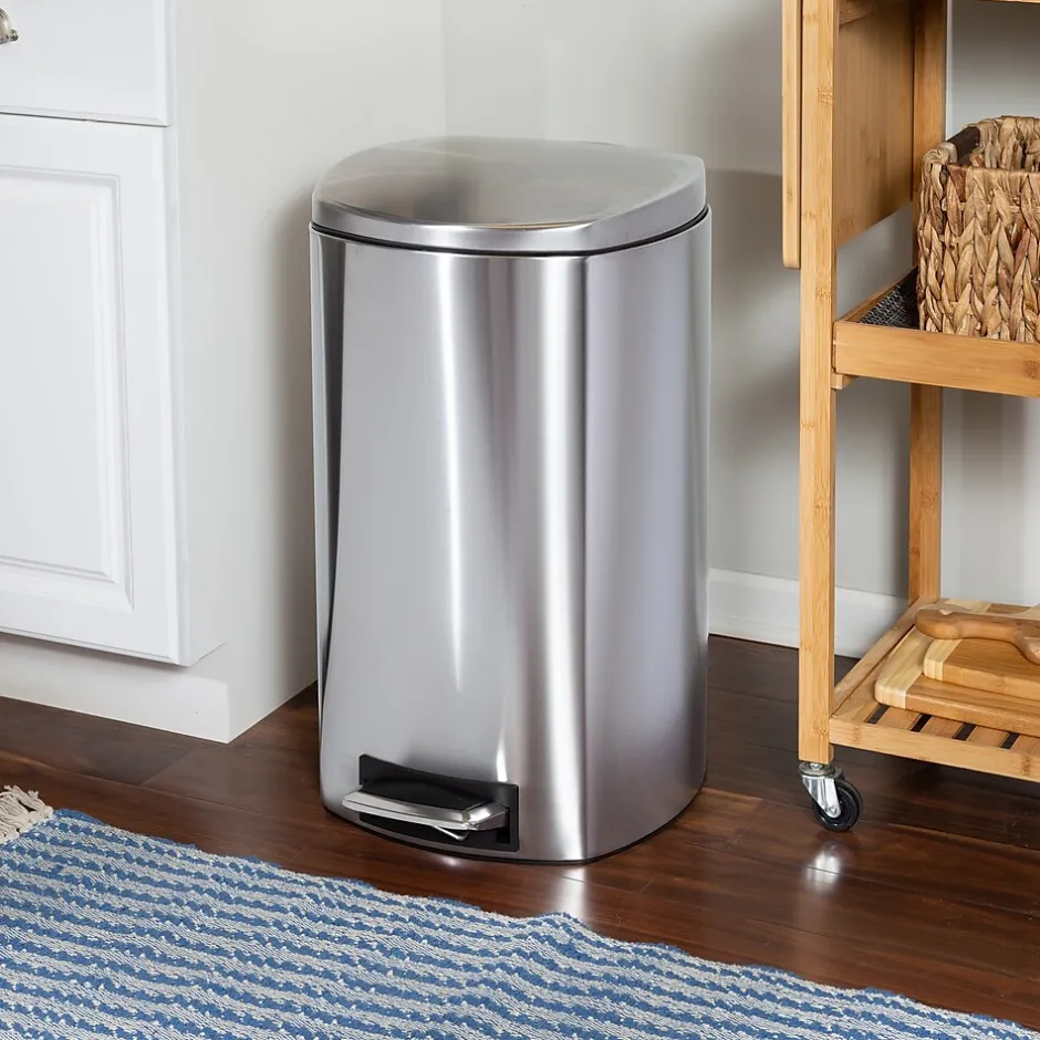 - Removable plastic liner makes taking out and cleaning up trash a cinch