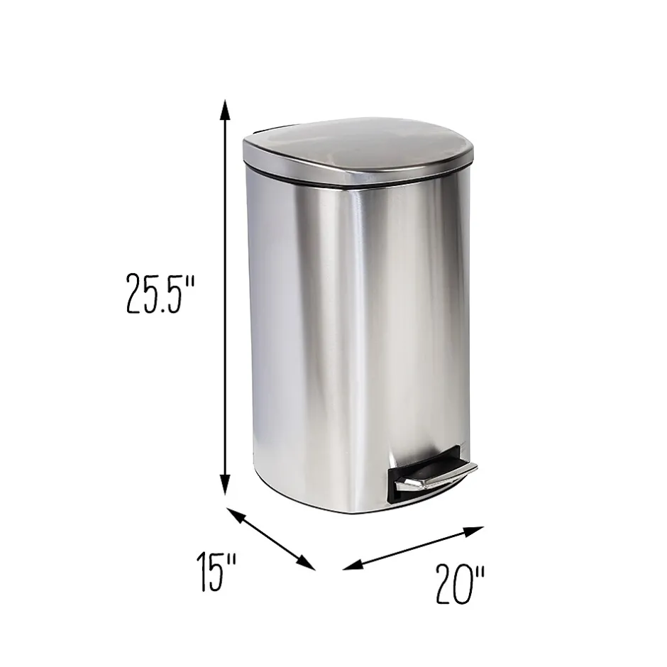 | Depth in Inches Trash can or recycling bin features. For example: molded hand grips, wide rim, step on, touchless | Step On |