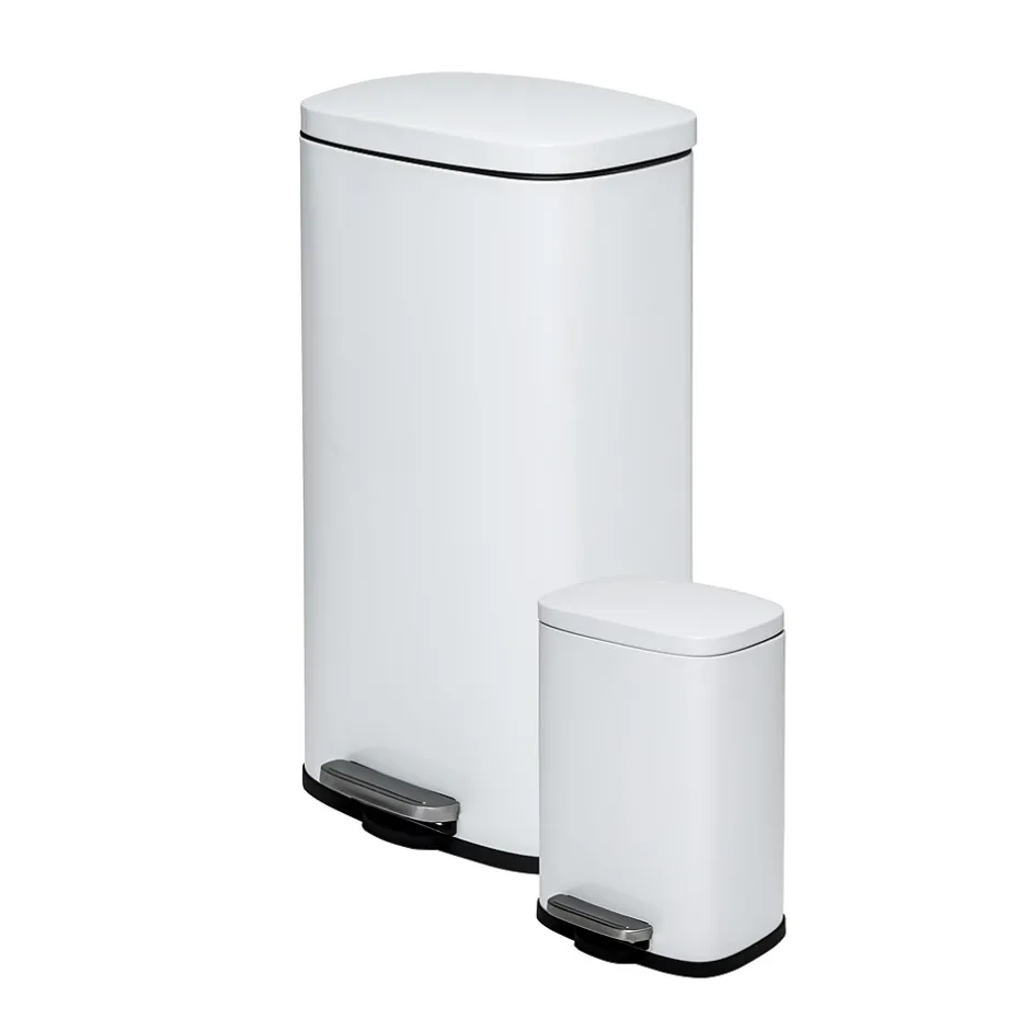 Honey-Can-Do Steel Indoor Trash Can Set with Hinged Lid, 7.92 & 1.32 Gallon, White (TRS-09076)
