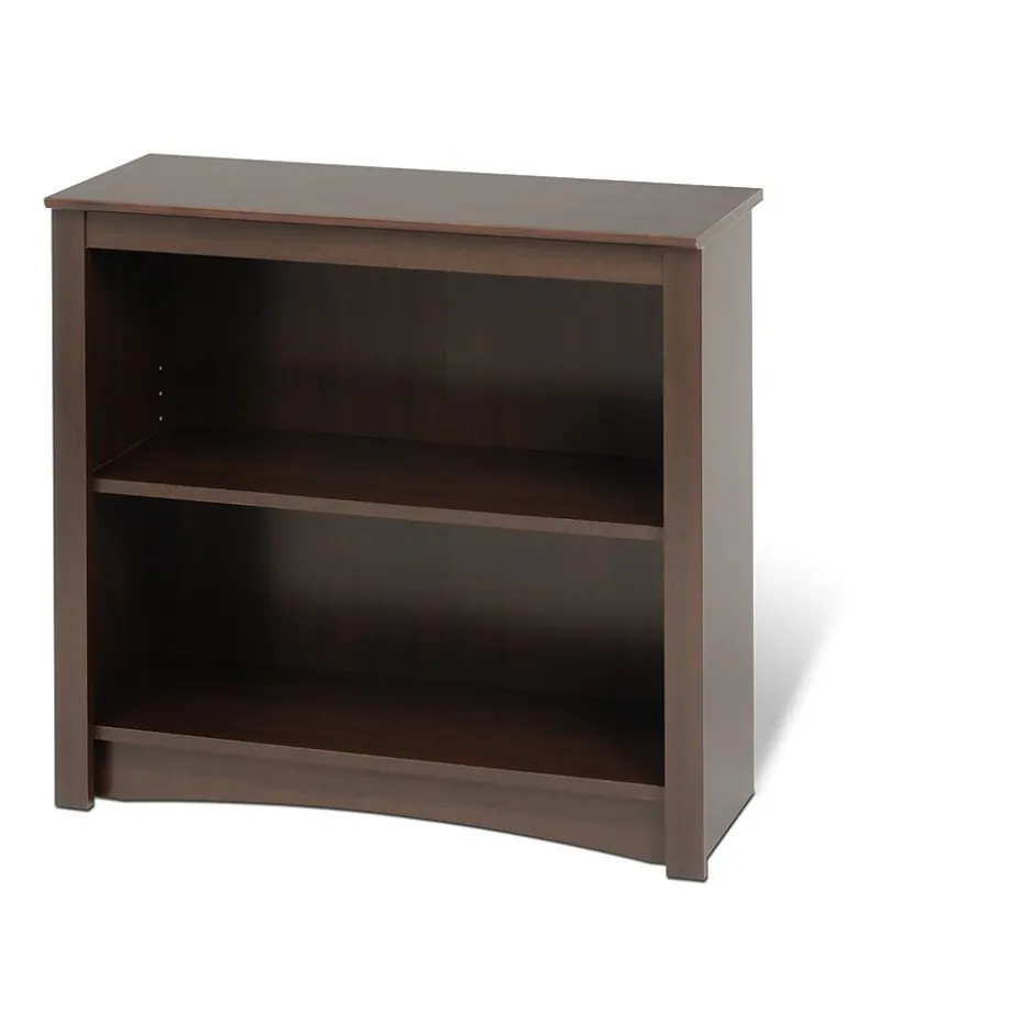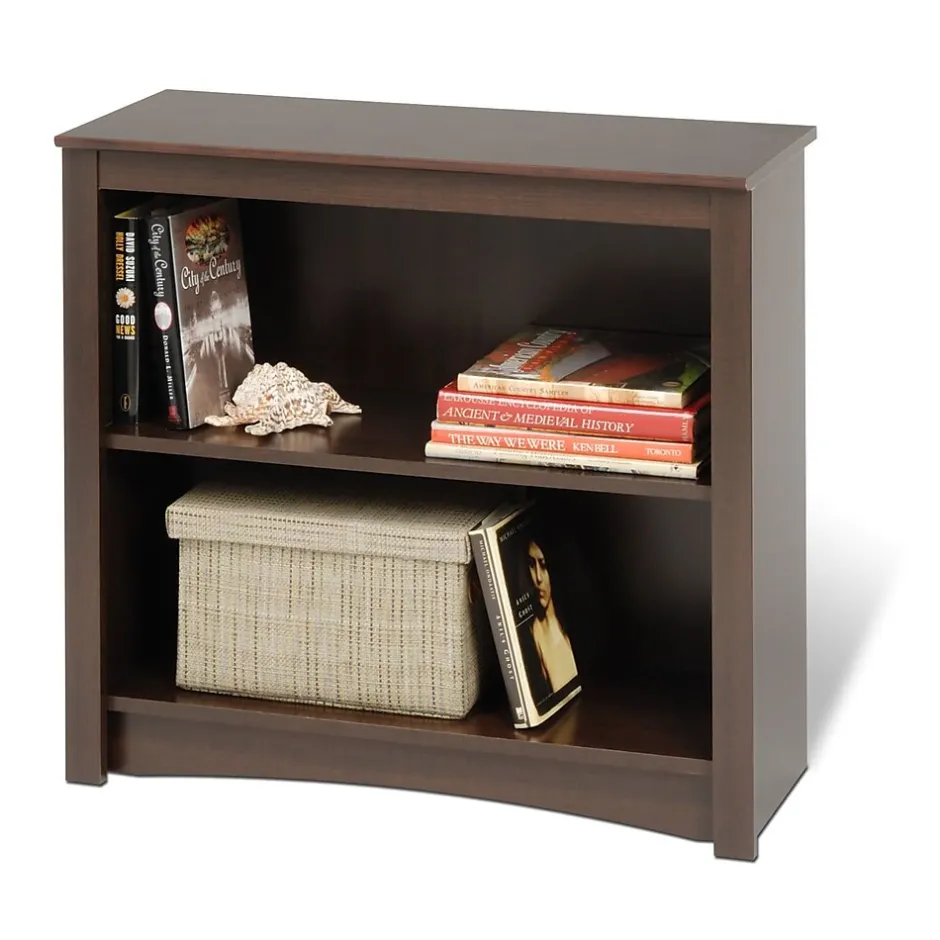 Prepac™ Espresso 2 shelf bookcase features two full-sized shelves with ample room to store books, baskets and other household items you need to organize. Bookcase has dimensions of 31.5″ x 29″ x 13″.